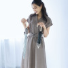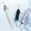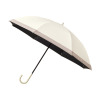 軽量で丈夫なグラスファイバー素材を使用した8本骨構造。デザイン面では上品な光沢のあるグログラン生地をアクセントにしたバイカラー仕様で、高級感のある仕上がりに。ハンドル部分には合皮を巻き、細めのデザインで華奢な印象を与えます。