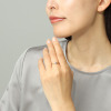 6本爪を採用し、爪をデザインの一部として、正面はもちろん横からも美しく見えるようこだわりました。石座の付け根には透かしデザインをほどこし、底部をミル打ちで一周囲むなど、シンプルな中にもオリジナリティーを感じさせるこだわりが詰まった仕立てです。