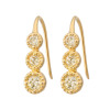 淡いシャンパンカラーが煌めく。3石のグラデーションラインと繊細なミル打ちが、耳元に上質な華を描く。