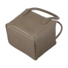 “バルティーゴ ボックス”は、左右を折りたたむことで“箱”のようなフォルムへ変化する構造を象徴した名称。一つのバッグで異なるシルエットを楽しめるデザインです。本体とストラップには、日本のタンナーで鞣した牛革型押しを採用。厚みやコシを適度に持たせた当ブランドオリジナルレザーで、細かなシボ模様が上品な風合いを添えます。色出しにもこだわり、日常の装いに調和する落ち着いた印象を表現。