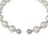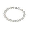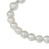 無調色ブルーグレーアコヤパールをあしらった、デザインバングルです。北村真珠養殖のオリジナルブランド“海蛍(うみほたる)”シリーズのアイテム。アコヤパールの強いテリと表面のキメの細かさが最大の特徴です。当メーカー養殖場で作った、長崎県対馬産の越物(こしもの/1年以上養殖したパール)を使用。“海蛍”シリーズの中でも、メタルっぽい色とテリを持つパールを選び、間にプラチナのボールパーツを配置することで、軽やかな印象に仕立てました。端っこには一回り大きいサイズを使うことで、着脱時に手首が傷付かないよう配慮。芯材にチタンワイヤーを用い、丈夫で軽やかな着け心地としなやかなフィット感を実現しました。
