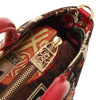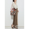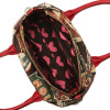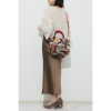 取り外し可能なショルダーストラップは長さ調節ができ、お好きな持ち方が可能。底びょうに配したレッドカラーのラインストーンがキラリと光ります。