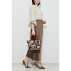 旅を想起させるワッペン風のモティーフがランダムに並ぶ、遊び心たっぷりのデザインです。奥行き感のある織生地に、ゴールドカラーのホットフィックスでかたどったハチやハートを配し、個性的な仕上がりに。