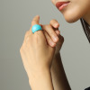 栃の木(とちのき)をくり抜いてお作りしたリング“清風”です。厚みのあるモティーフに会津塗りをほどこし、輝く太陽の光を浴びた鮮やかな海を思わせるブルーに仕上げました。