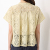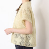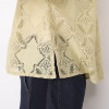 アラベスク調の柄を交互に配した特別感のあるレースブラウスです。透けている部分と透けてない部分が交互になることで、程良い透け感になり上品な印象で着用いただけます。存在感のある柄を活かして、その他のデザインはシンプルに、また着やすいように仕上げました。ゆとりのあるシルエットにちょこんと付いた袖が大人かわいらしい印象を与えます。また、身体に張り付きにくく、盛夏でも爽やかに着こなせそうです。スカートでもパンツでも合わせやすい着丈に設定しました。
