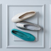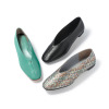 アッパーは、深めのVカットシルエットで、足元をすっきりと美しく見せてくれそう。フロントにほどこしたメタルパーツは、主張しすぎない絶妙なサイズ感で上質なアクセントに。つま先裏や足裏に配したクッションが、足にやさしくフィット。ライニングは、マイクロファイバー生地を使用し、ソフトな足当たりを実現。また、当ブランドオリジナルのブルームフィットにより、かかと抜けしにくいつくりです。