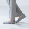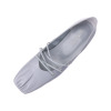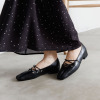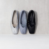 つま先のギャザーと甲のクロスゴムが印象的なフラットパンプスです。柔らかな一枚革仕立てで、足を包み込むような履き心地を実現しました。足なじみの良い、美しいVカットデザインもデザインのポイント。つま先のギャザーが柔らかな表情を生み出します。