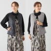 日常に洗練をもたらす、フード風の襟ぐりとサイドボタンの絶妙な配置。都会的センスが光る軽やかなベスト。