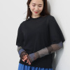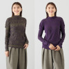 さまざまな形状の糸を用いたローゲージニットと綿ジャージーを組み合わせた、装いのアクセントになる一品。