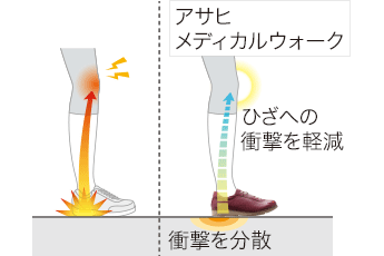 膝にやさしい歩行へと導く機能“SHMプラス”を搭載。足あたりがやわらかい合成皮革素材モデル。