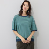 さらさら肌触りの薄手リブニットで女性らしさを演出。袖口のアクセントカラーが装いに新鮮な彩りをプラス。