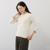 ミューリエ “女っポロ”で スマートきれい 袖口コンビ ポロシャツ風 ニットプルオーバー