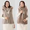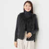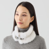 ふわふわと柔らかなレッキスラビットファーが、首元をやさしく包み込みます。装いのワンポイントに。