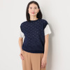 インターシャで表現した幾何学模様。すっきりとした胸元の柄が視線を上に導き、着やせ効果を発揮します。