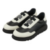 シックでありながらトレンドを押さえた大人の一足。両サイドのダブルジップと配色で足元を盛り上げる。