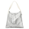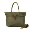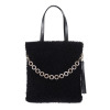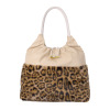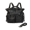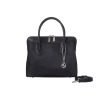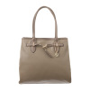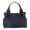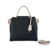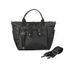 シュリンク型押しのフェイクレザーに、ストライプテープのハンドルがアクセント。A4対応サイズで便利。