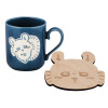 マグカップの絵柄部分に凹凸加工をほどこしたこだわり仕様。お顔のコースターも付いた、むちゃかわアイテム。