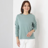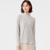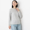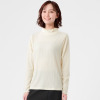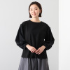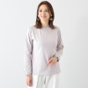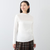 すっきりとした印象を与える、ランダムリブの魅力。シャーリングで彩られた襟元が装いを引き立てます。
