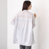 なめらかコットン素材とエレガントな袖刺しゅうのコントラスト。美しいカットワークが華やかさを演出。