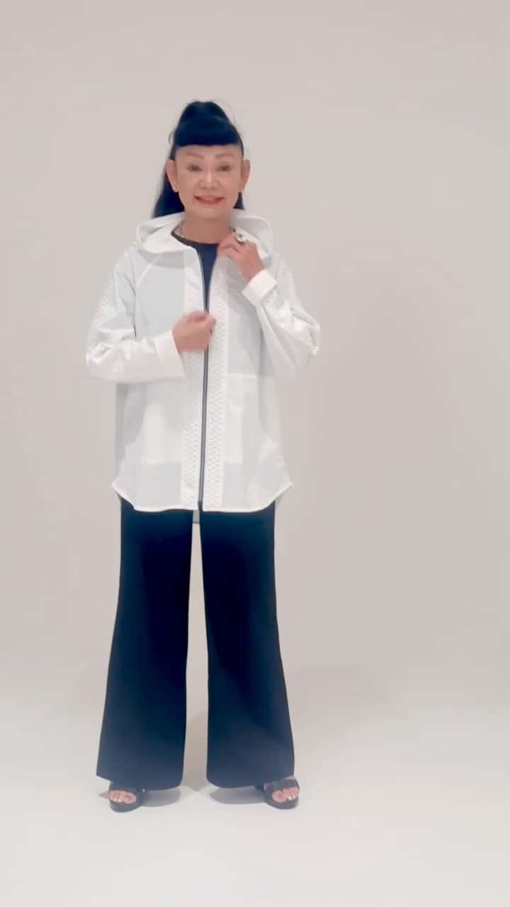 UV加工の羽衣の様な軽い素材で、シャツと,パーカーがドッキングした,アイテムは,酷暑の日焼け防止に最適なアウターです。肩のレースが,エレガントで、スポーツテイストとのミックス&マッチの羽織りです。 キョウコ ヒガ UVカット・吸水速乾 サラッと快適 レースアクセント フーディーオーバーシャツ/- #秋コーデ #オンスタイル #オーバーサイズ #無地 #骨格ナチュラル #キョウコ ヒガ #ファッション #やせ型 #トレンド #シャツ #カットソー #パーカー